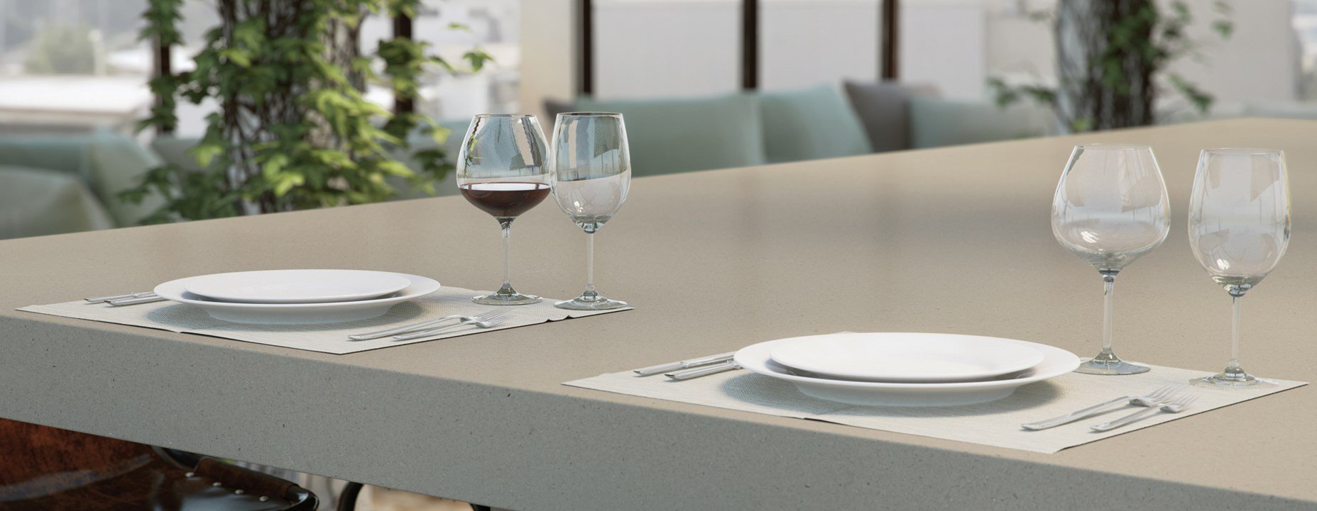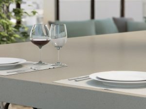 The Raw Concrete worktop from Caesarstone’s Metropolitan collection exemplifies urban sophistication. Its soft grey tones, interspersed with textured flecks of black and white, perfectly emulate the raw beauty of concrete, making it an ideal choice for contemporary and industrial-style kitchens. Available in a concrete finish, this mineral worktop offers superior durability and a stylish aesthetic that captures the authentic patinas of industrial materials.
