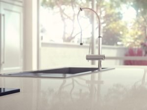 The Caesarstone 6141 Ocean Foam quartz worktop is easy to maintain, requiring only simple cleaning with warm soapy water to keep it looking pristine. Its robust composition ensures long-lasting performance, making it a practical investment for any home or commercial space. This worktop seamlessly integrates with a range of interior styles, providing a timeless addition that enhances the overall ambience with its clean, crisp appearance.