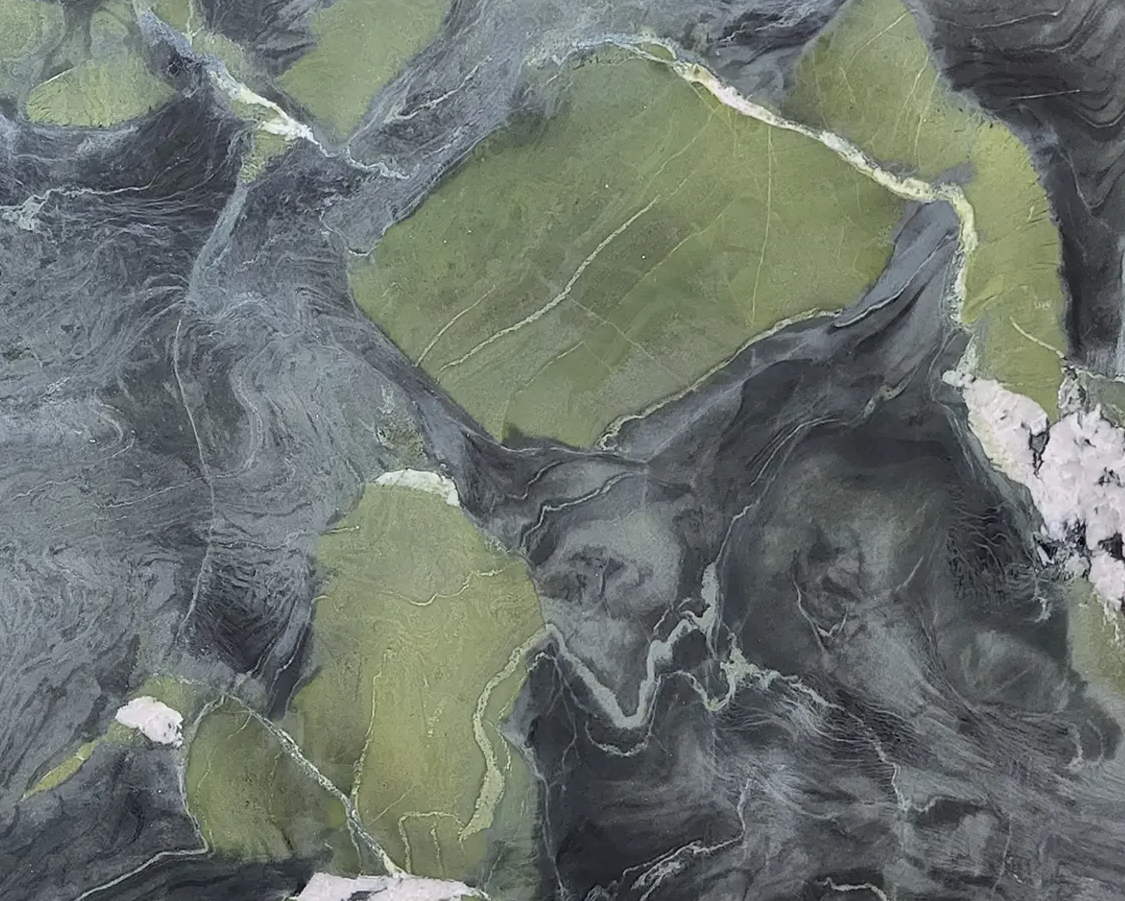 Avocatus Quartzite is a stunning dark green stone sourced from Brazil, celebrated for its rich colour and intricate veining patterns. With pale green, white, and occasional black mineral concentrations, this stone adds depth and sophistication to spaces. Its durability makes it ideal for high-use areas like countertops, feature walls, and flooring. Resistant to scratches and heat, Avocatus Quartzite offers a harmonious blend of aesthetic appeal and resilience, suitable for both contemporary and traditional interiors.