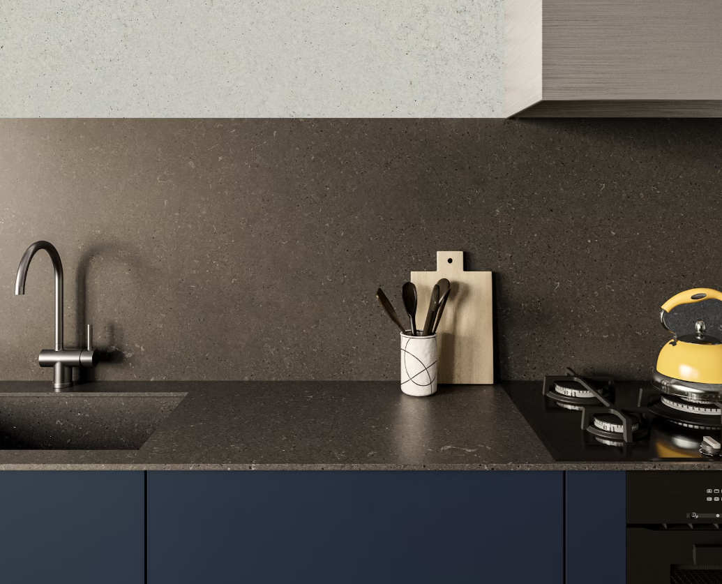 It features a deep, warm hue reminiscent of aged brass, making it an excellent choice for creating a sophisticated and timeless look. Whether you’re updating your kitchen, bathroom, or commercial space, this quartz surface enhances the ambience with its rich colour and smooth, polished finish. The distinctive brass tones add depth and character, making it a focal point in any room.