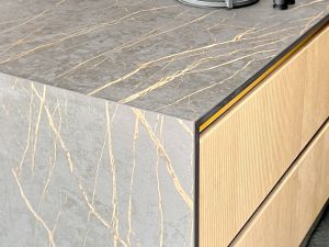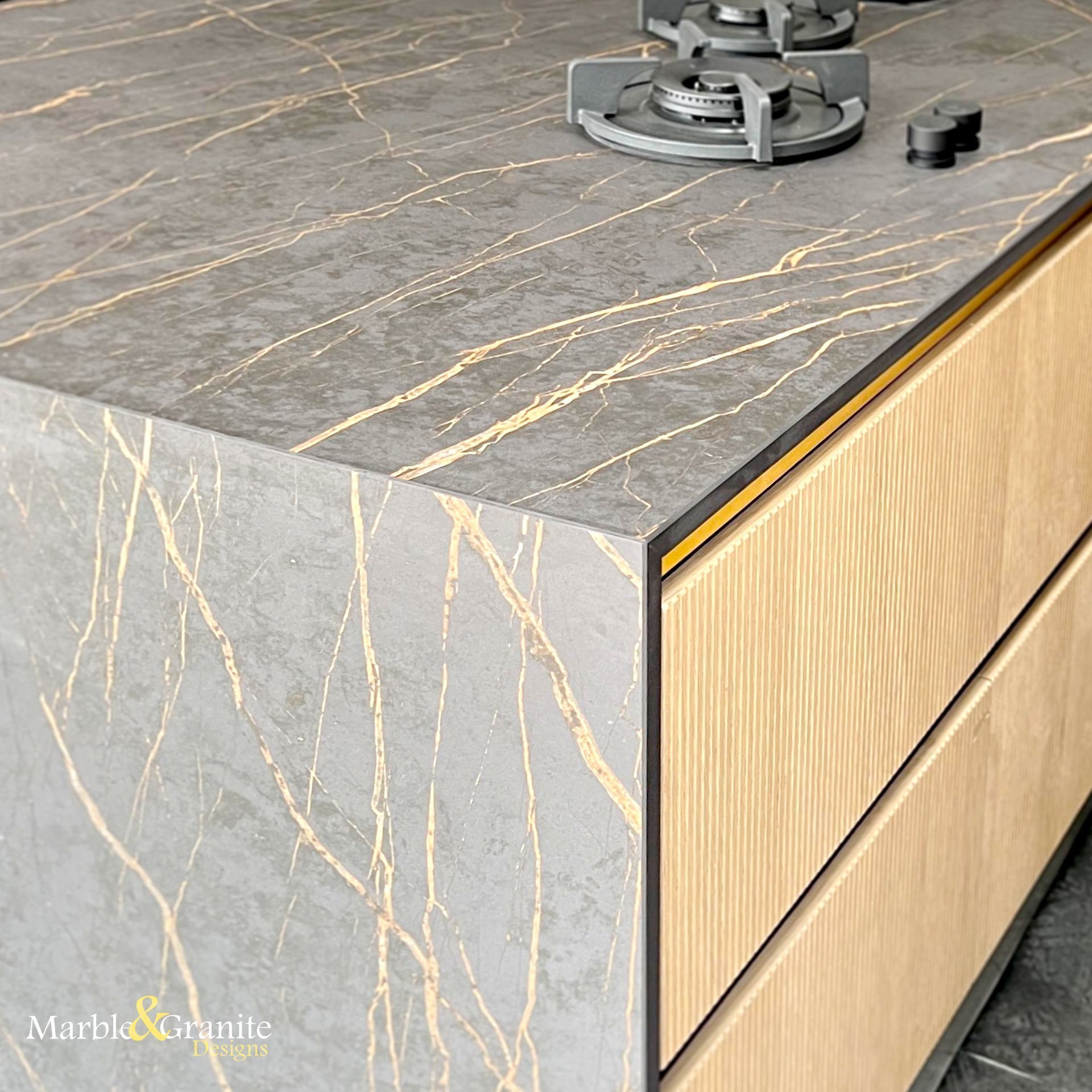 Dekton Laurent is a striking addition to Cosentino’s Natural Collection, drawing inspiration from the elegant natural stone Port Laurent. Its dark, rich brown base is beautifully intersected by bold golden veins, offering a luxurious appearance reminiscent of classic marble but with superior functionality and durability.