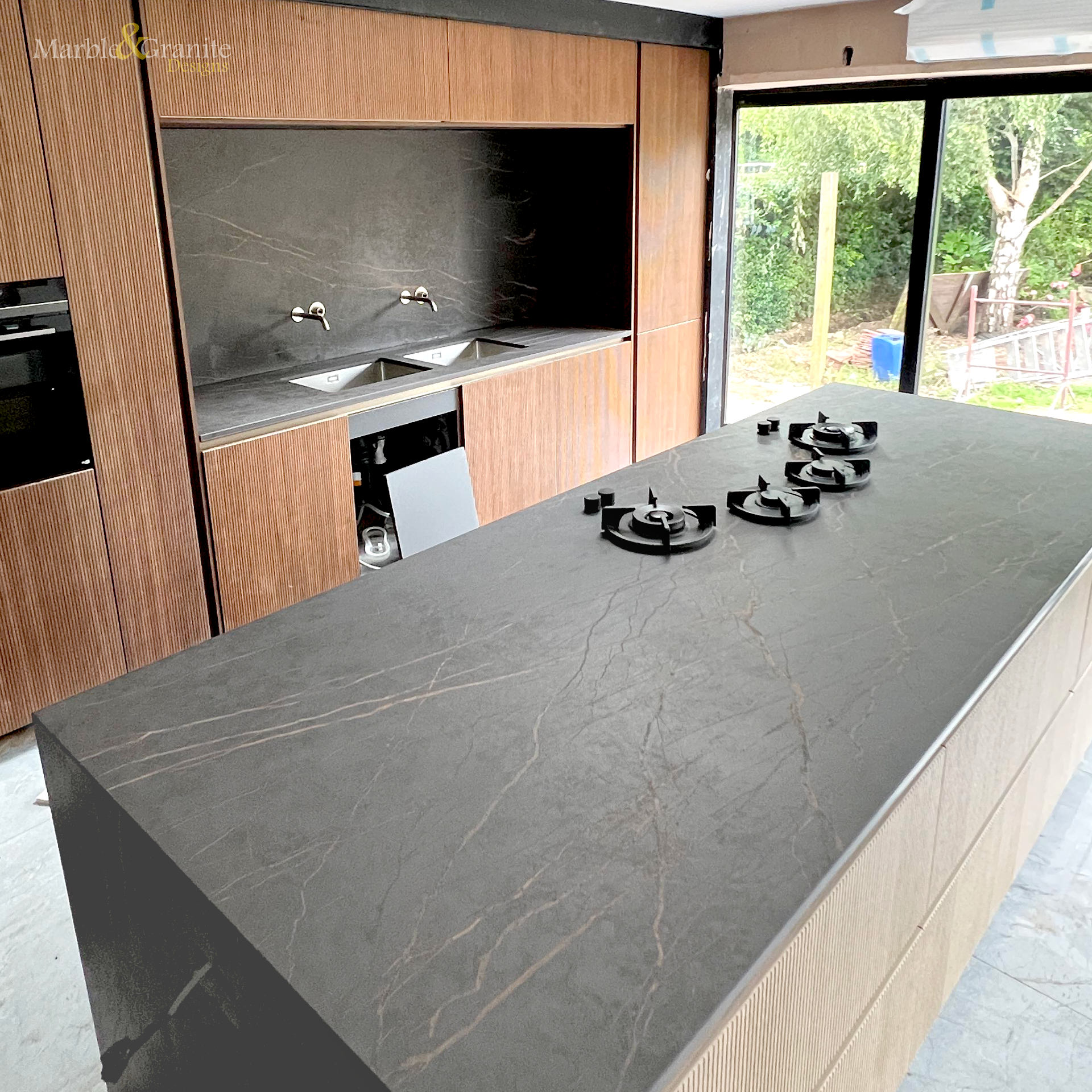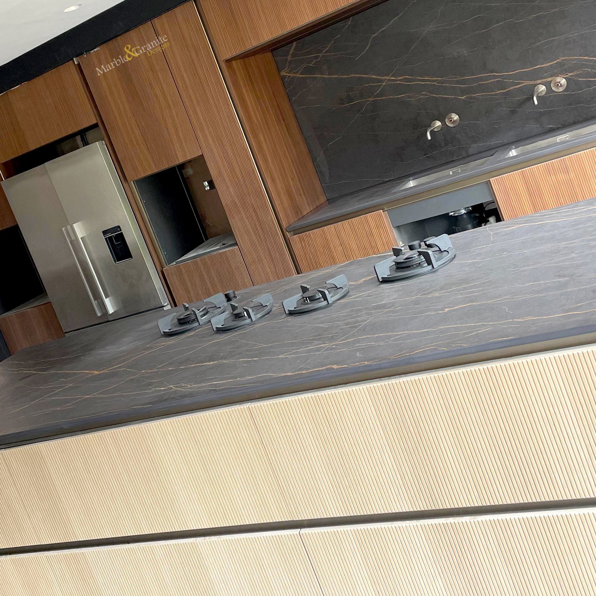 Manufactured through an advanced sintering process, Dekton Laurent combines the best attributes of glass, porcelain, and quartz into an ultra-compact surface. This technological innovation ensures the surface is visually appealing and highly resistant to scratches, stains, and thermal shock, making it ideal for high-traffic areas.
