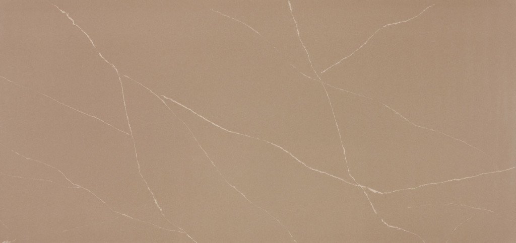 Noblesse Sand is a brown quartz worktop from Diresco with contrasting flecks and light, marble-style veins throughout.