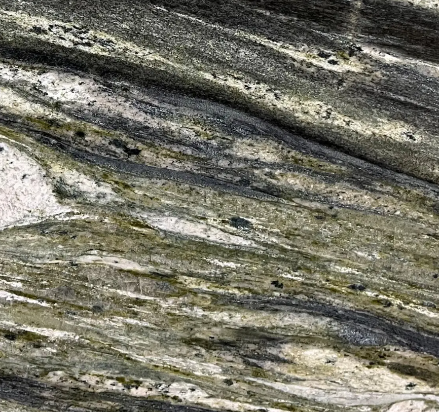 Tropical Fashion Granite is a breathtaking natural conglomerate from Brazil, characterised by its rounded fragments in a spectrum of sizes and colours. The presence of a lined structure adds a unique dimension to its appearance. As a metamorphic rock, specifically a foliated gneiss (EN 12670), it offers an exotic yet sophisticated option for those looking to infuse a touch of tropical flair into their designs