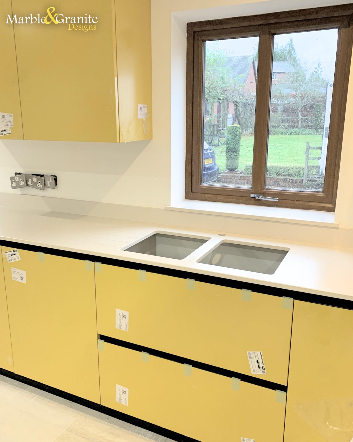 - Upstands: 100mm upstands were fitted, creating a seamless transition from worktop to wall and protecting the paintwork.