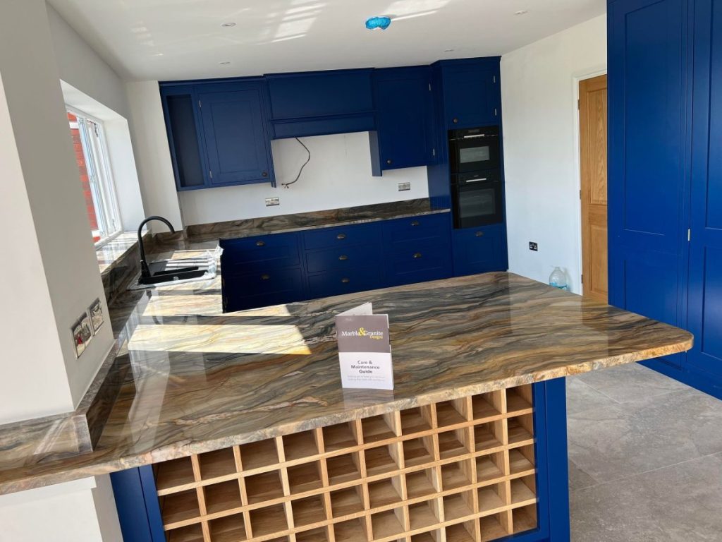 Discover the beauty and durability of Fusion Wow Quartzite for your kitchen worktops. View our installation gallery and learn about the unique colour variations, benefits, uses, and maintenance tips for this stunning stone. Contact us today to learn more!